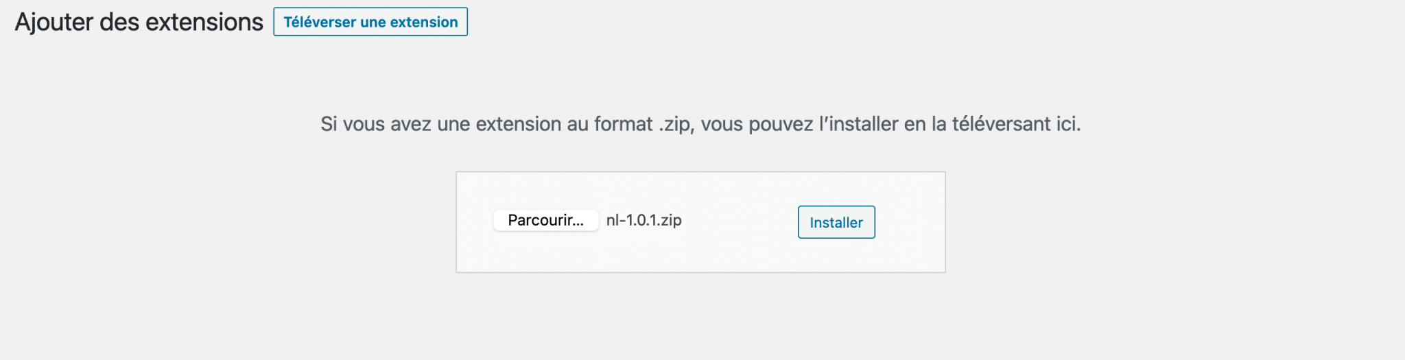 Vous obtiendrez un fichier .zip que vous pourrez alors téléverser sur votre WordPress via « Extensions » puis « Ajouter ».